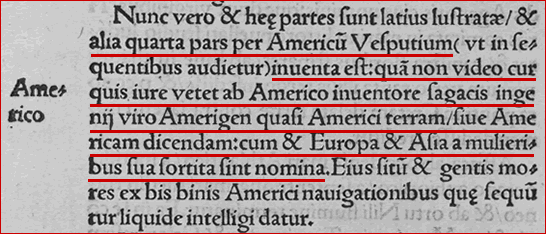 En 1507, el cartógrafo alemán Martín Waldseemüller, publicó Cosmographiae Introductio, en la que se incluyó por primera vez un mapa del Nuevo Mundo y por primera vez con el nombre de América. Creyendo que Vespucio había sido el descubridor, en un párrafo comenta que no está mal que el nuevo continente lleve el nombre de Americu Vespucci. En la historia oficial, se entiende que ésta es el acta de bautizo del nuevo continente. Aunque parece quue el cartógrafo alemán cayó en la cuenta de que las cosas no eran como él las había interpretado y, en 1513, llama al nuevo continente “Tierra nova”. Pero, ya era demasiado tarde, en todos los países se siguió hablando de América.